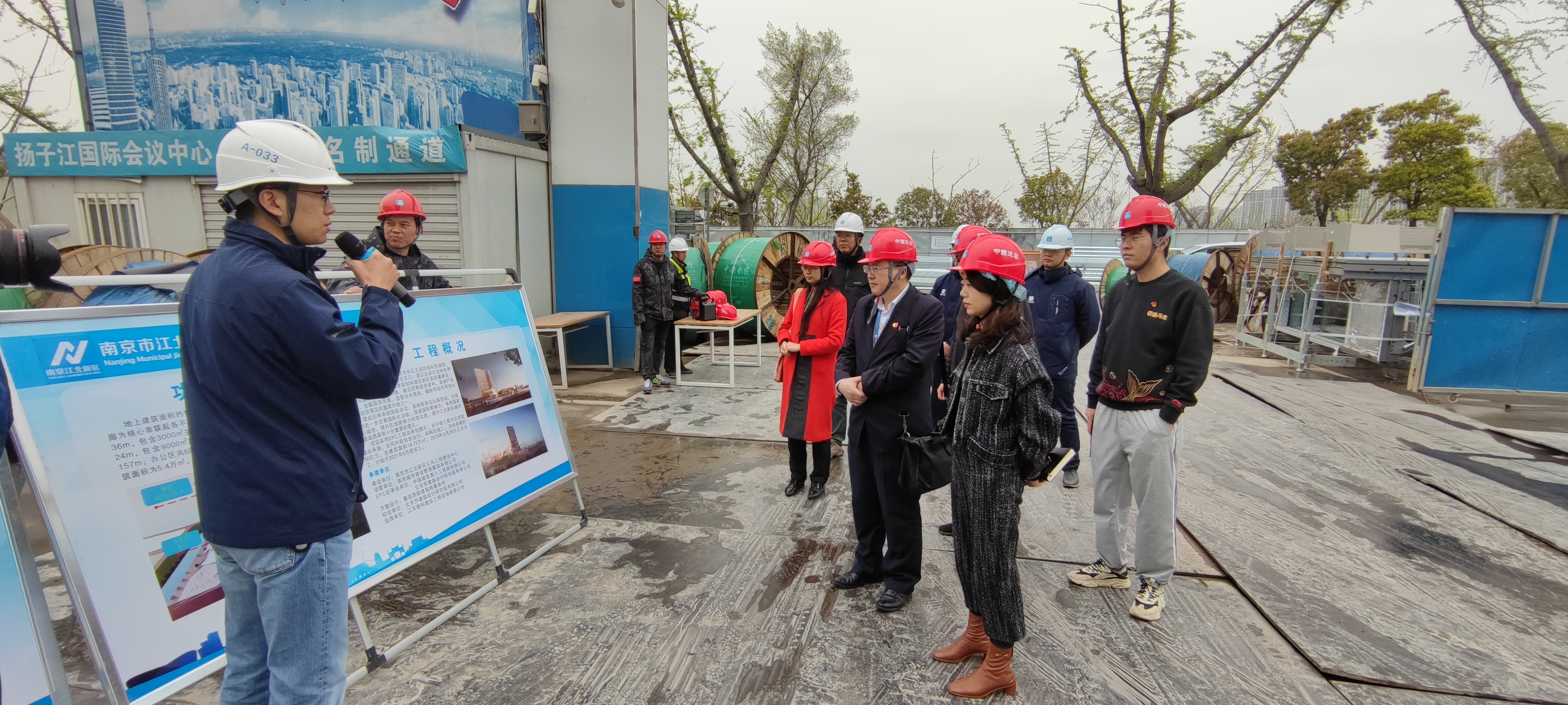调研过程中,项目负责人详细介绍了项目工程概况、现场标准化管理等情况,并陪同参观施工现场。扬子江国际会议中心项目为长江之滨的地标性建筑,由中建八局与北京院联合承接,总投资约50亿元,总建筑面积18.72万平方米,工程已进入内外装饰、机电安装和室外工程施工阶段,2021年两岸企业家峰会将在此召开。