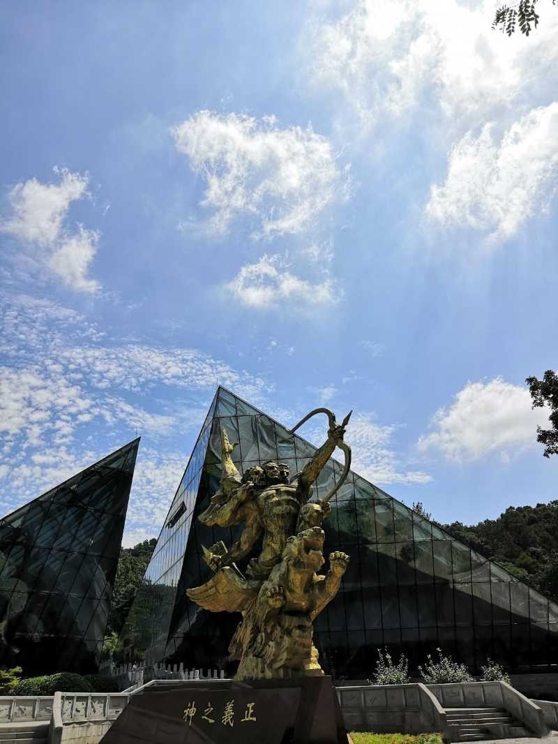 进入纪念馆大门,青铜雕塑“正义之神”映入我们眼帘,三头六臂的正义之神跨坐在飞天虎上,手中的利箭直指长空。象征着中、苏、美三国团结一心联合抗战的决心和气势,象征着国际统一战线的战无不胜的力量。一旁的纪念碑上镌刻着两列墓志铭:悍国骋长空,伟绩光照青史册;凯旋埋烈骨,丰碑美媲黄花岗。