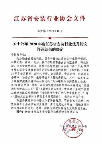 2020年度江苏省安装行业优秀论文征集评选活动落下帷幕,经个人申请、企业推荐、专家评价、评选委员会评审,最终评出获奖论文112篇。