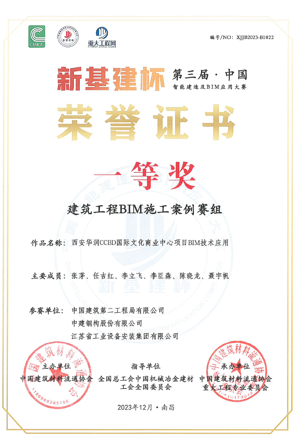 我司上海分公司参与第三届“新基建杯”智能建设及BIM应用大赛,参赛作品《西安华润CCBD国际文化商业中心项目》荣获一等奖。