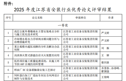 近日,江苏省安装行业协会公布了2025年度优秀论文评选结果,公司报送的论文凭借扎实的实践基础和显著的实用价值,在评选中表现突出,共29篇论文获奖,其中一等奖7篇、二等奖8篇、三等奖14篇。