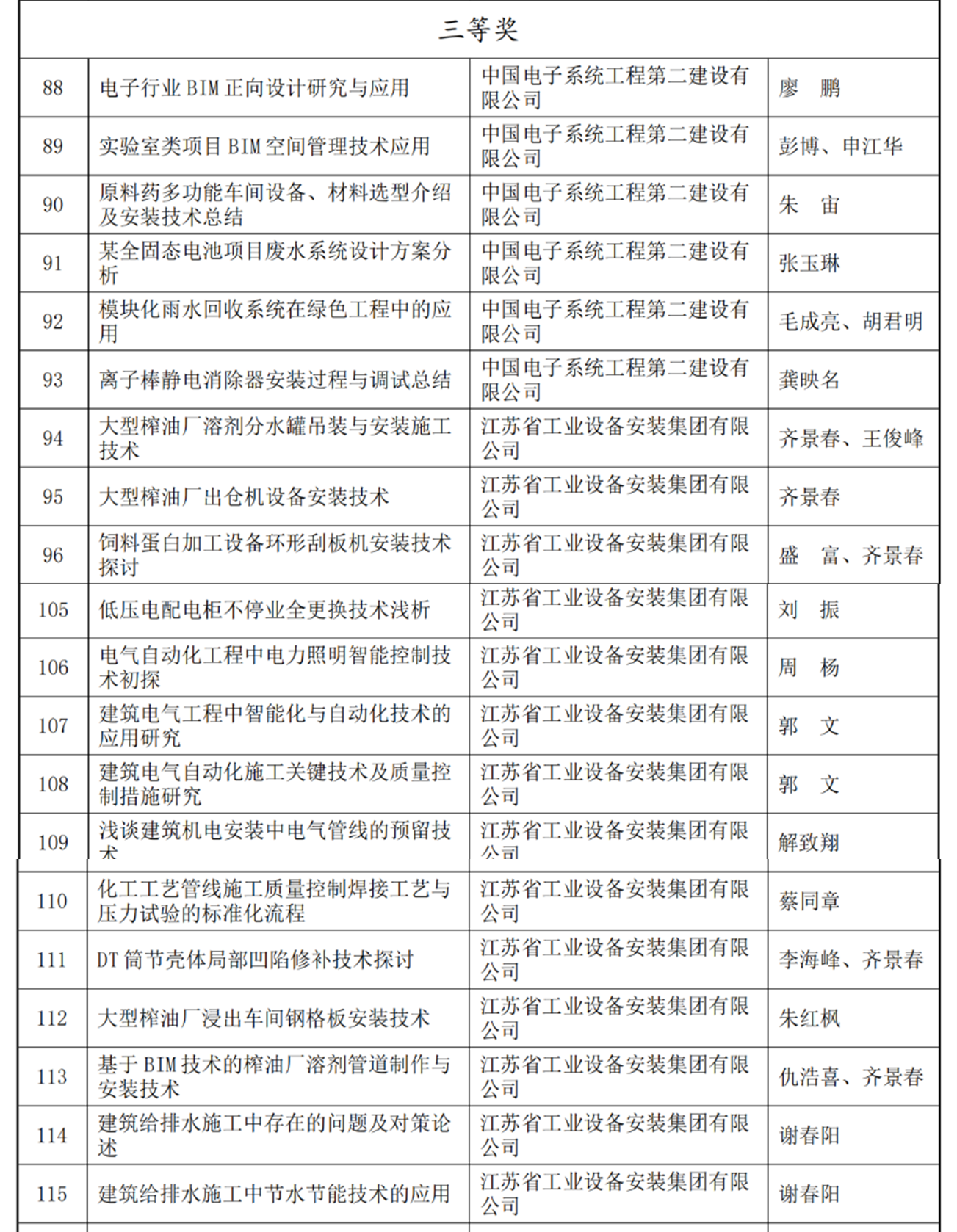 本次获奖论文覆盖民用建筑、工业安装、生物医药等多个专业领域,均来自项目一线实践,为各类技术难题提供了创新解决方案。以下为部分代表性成果:
