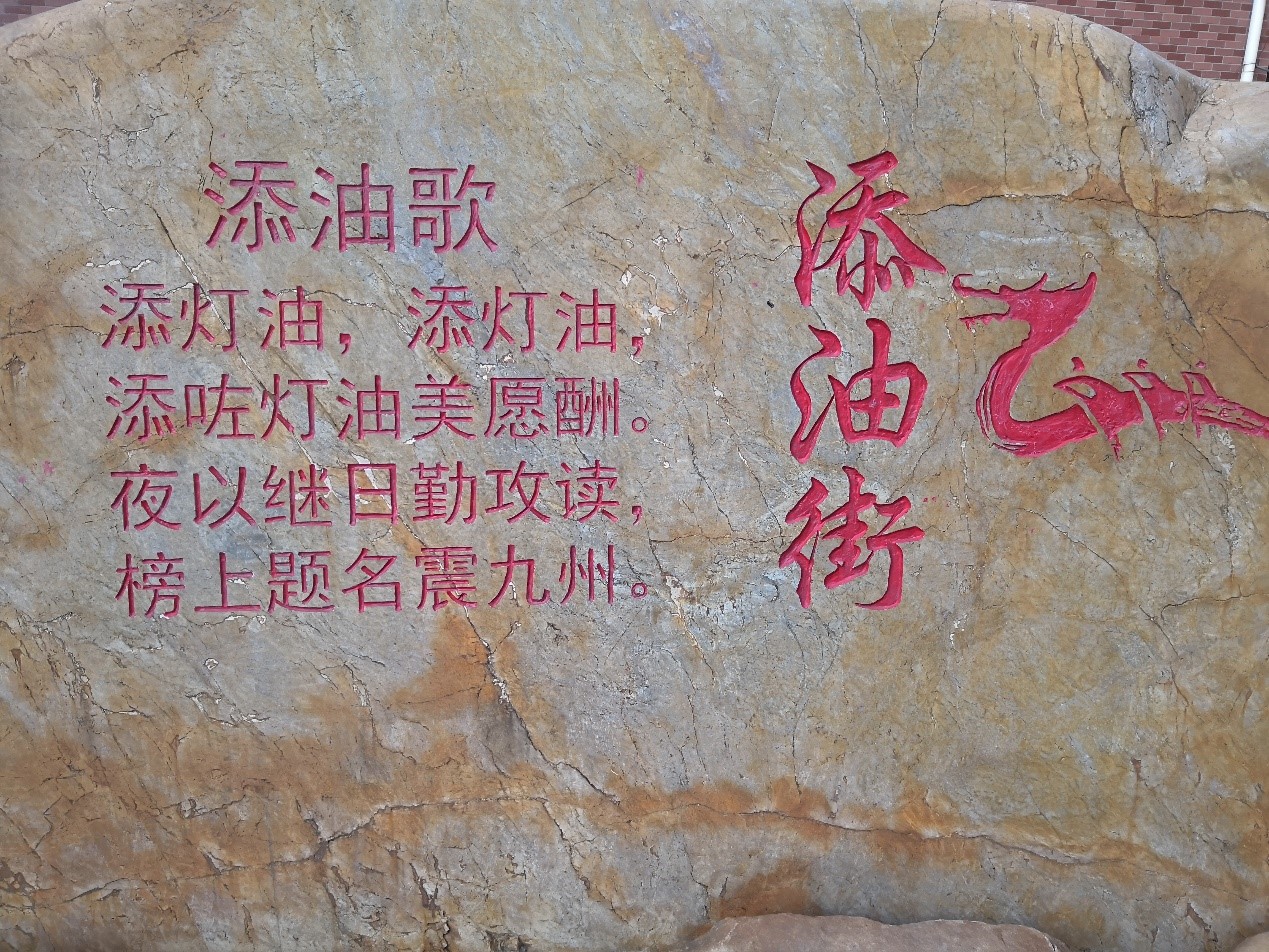 在添油街路口,有一座石碑,石碑上题写一首“添油歌”,道出了具有悠久历史和文化特色的传奇故事:“添灯油,添灯油,添咗灯油美愿酬。夜以继日勤攻读,榜上提名震九州”。