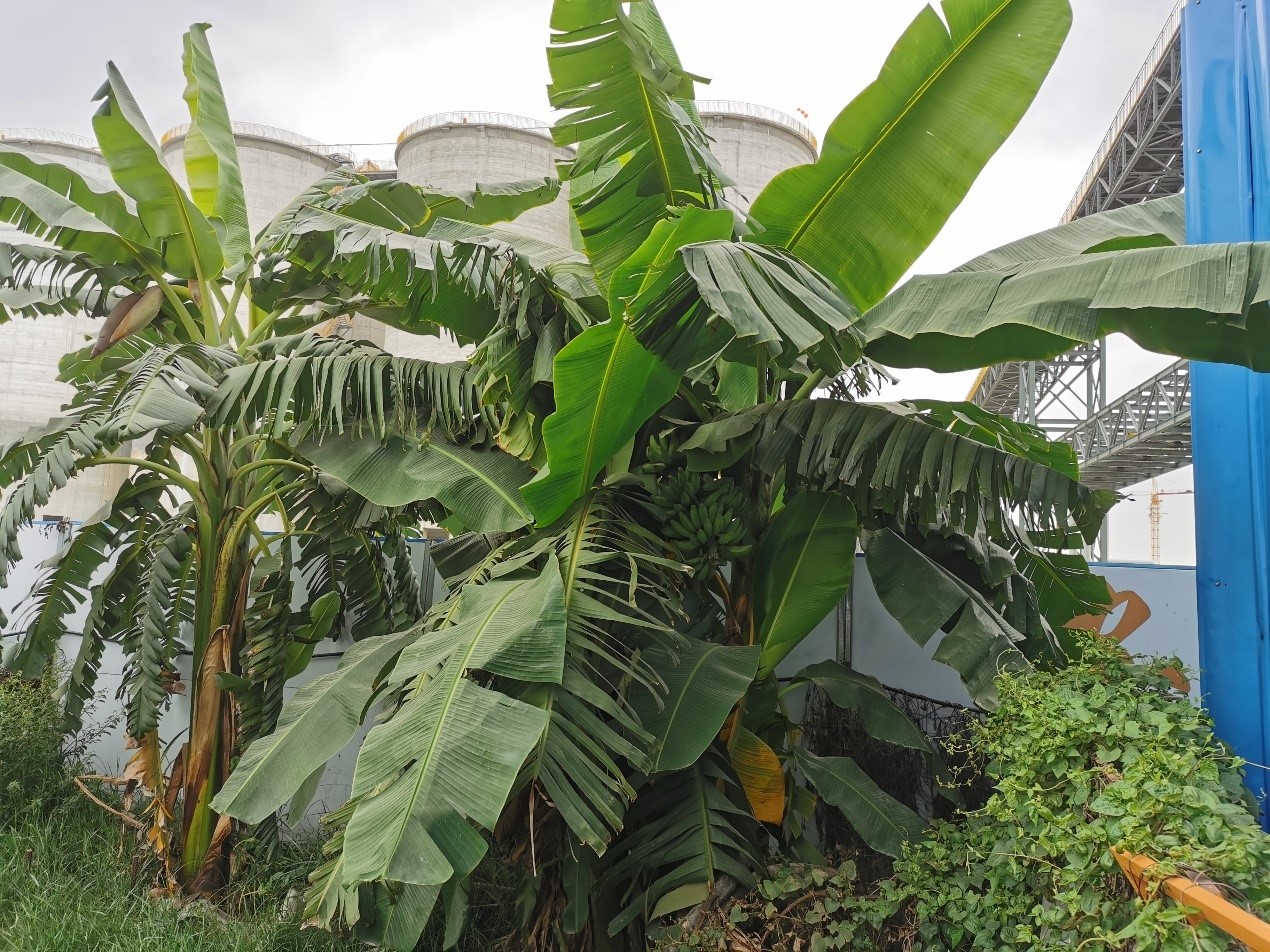 更有意思的是,榨油厂二期项目开工时,为美化环境种植的香蕉苗,在众人围观下,一天天长大,开花,结果,一大束的香蕉,眼看就要成熟了!
